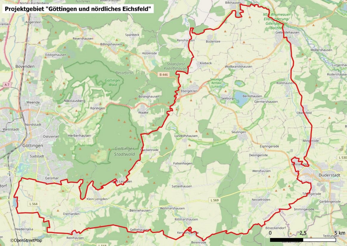 Die ausgewählten Projektgebiete sind auf acht Bundesländer verteilt und decken auf insgesamt fast 2.900 km² unterschiedliche Naturräume ab. Eines dieser Projektgebiete befindet sich im Landkreis Göttingen: